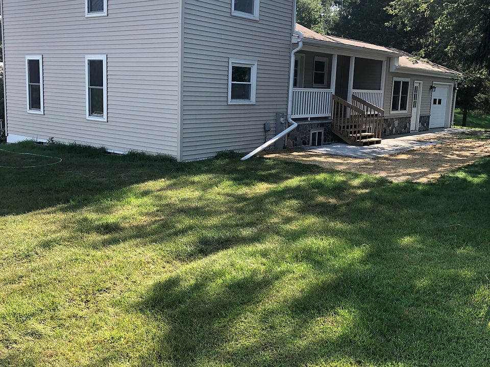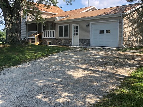 Open kitchen, dining, living area with vaulted ceiling with wood burner. New Windows. Electric Heat. 200a electric service. , New vinyl siding. Basement is finished with an office/laundry area, and 5 store rooms. Water is from a shared well. 40x56 metal building with heated shop. Shared border with Kettle Moraine State Forest, a mile or so from horsemans park.