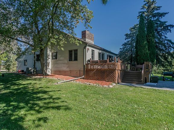 Experience the best of country living just minutes from town! This spacious 3-bedroom, 2-bath home is filled with character and charm — featuring a warm and inviting living room with a wood-burning fireplace, soaring cathedral ceilings, and beautiful exposed wood beams. The open layout flows into the dining area and updated kitchen, perfect for everyday living or entertaining. A convenient main floor bedroom, first-floor laundry, and mudroom with attached 12x9 storage room add extra functionality. The lower level offers great storage and a roomy rec area. Enjoy the outdoors on the large deck overlooking a stunning, tree-lined lot, plus a 36x26 detached garage for all your toys and tools. Country feel, close to everything — this one has it all!