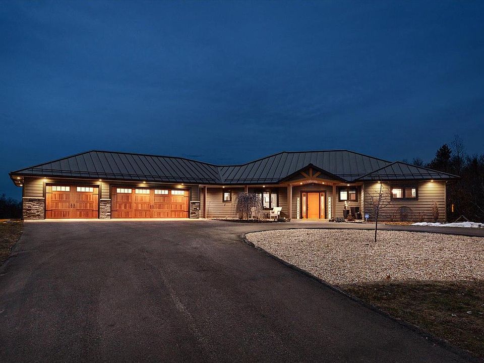 Stunning home on 39 acres of scenic landscape! Built in 2019, this walk-out ranch features an inviting open concept layout, accentuated by 9' & 12' ceilings. The gourmet kitchen, complete with granite countertops & a walk-in pantry, seamlessly flows into the expansive living & dining areas. Convenient main floor laundry & office. Master suite boasts a spa-like bathroom & a private balcony, while the lower level offers five additional bedrooms & a walkout basement leading to a patio & covered entertaining area with an outdoor bar. Heated floors in the garage & basement, along with a 60X80' heated workshop, this property combines luxury with functionality. Outdoor enthusiasts will delight in the exceptional hunting potential surrounding the home. Conveniently located minutes from Holmen.