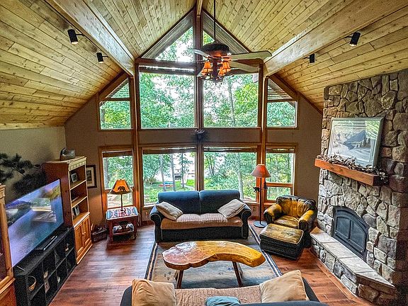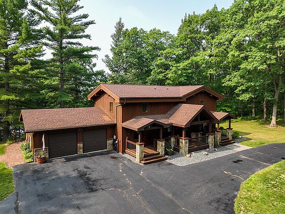 ROAD LAKE RETREAT. Come and check out this beautiful sanctuary with a spectacular southern exposure, peaceful water and wonderful wildlife viewing. Lindal Cedar home with over 3.5 acres and 350' of frontage. Many upgrades to include a whole house generator, composite decking, newer roof and hardwood floors, just to name a few. Paved circular driveway and a separate, heated, 3-car garage with attached green house and storage along with a garden area make this property so inviting. Call today to start making your own family memories.