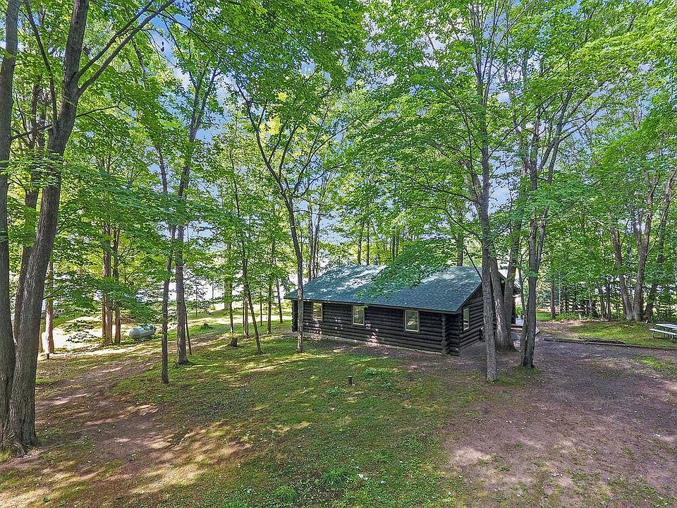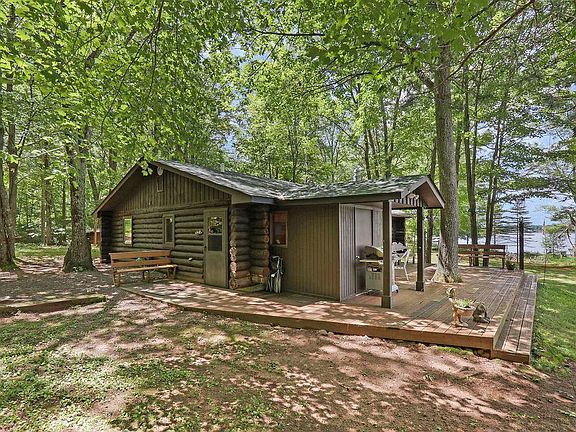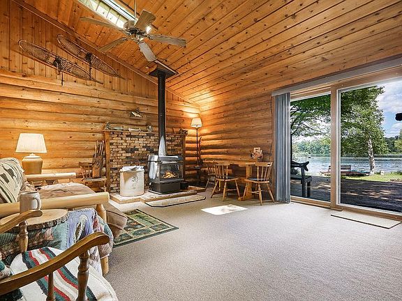 Idyllic secluded “Log Cabin” on Spooner Lake provides an intimate atmosphere for those who appreciate the simple things in life. A spacious wrap-around deck is an ideal spot to soak up the sun and bask in the charms of nature. Rustic luxurious details continue into the interior, with knotty pine chalet ceilings, skylights, free standing fireplace, and a large patio door offering breathtaking views of the level sandy lakefront. 1132-acre lake has the makings for the perfect lazy summer day of lounging, swimming, or fishing. When you're ready to call it a day, the cozy 896-square-foot interior coaxes you to kick up your feet in the comfort of a "Rustic Log Cabin”.
