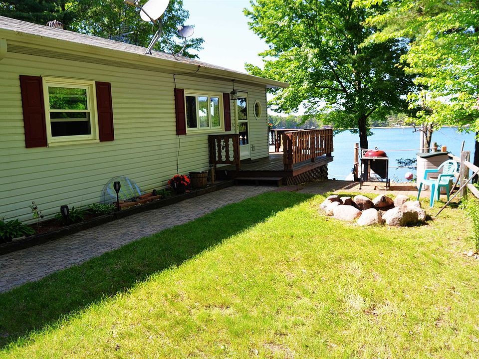Beautiful house on Full Rec Lake with a Sandy Beach. Dock, and a 12x24 Boat House. Large garage able to hold boat and 2 cars. Large work room in basement plus a Shower next to the half bath. Plenty of storage space in basement and in pantry on main level. Walk in closet in Master Bedroom. Large deck overlooking the lake. This house is a must see.