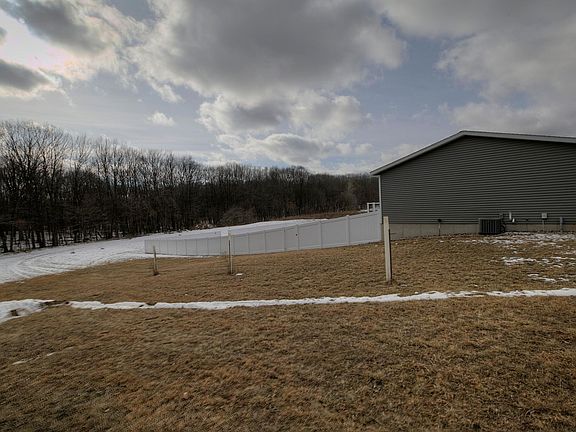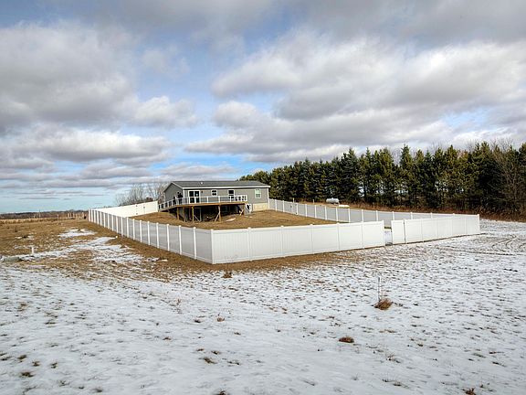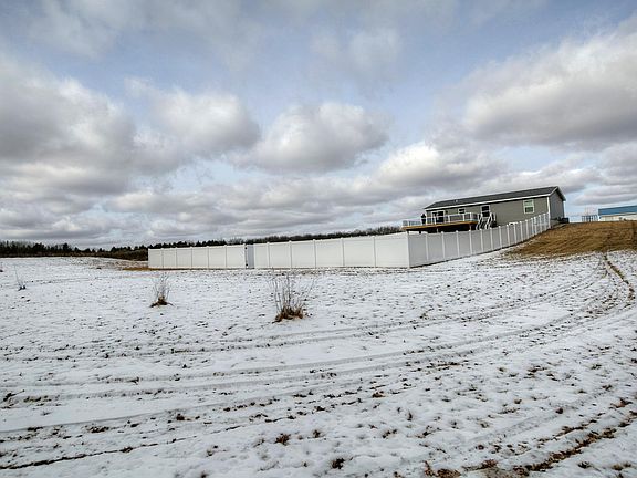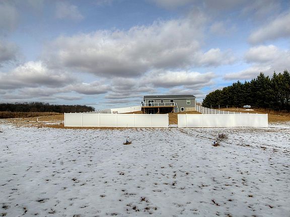 Enjoy the view of your fenced yard from the beautiful wraparound deck on this 2022 built home set on 15 acres of carefully planned paradise. The home features main level living with 3 main floor bedrooms, 2 bathrooms, and a spacious laundry. An open floor plan featuring a kitchen island and a walk out from the dining room to the huge composite deck overlooking the enclosed yard and beyond. The unfinished basement has some partially finished space waiting for your finishing touches, and a walkout to the enclosed backyard. The lot features 6 acres of mature woods for hunting and syrup, and 9 acres of tillable that has been carefully plotted with more than 400 young mixed trees. Patches of asparagus, raspberries, elderberries, and other native edibles await in the meticulously planned landscaping.