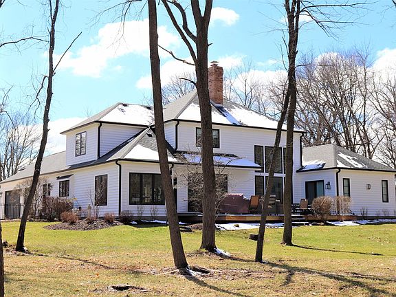 Very private 1.365 acre home site on top of a hill with matures trees and located off South Lake Shore Drive between Fontana and Williams Bay. In 2021, this 5 bedroom, 6 bath home had a major renovation. New roof, new Azek easy care deck, new board & batt siding on the front elevation and all new windows & doors. The interior has all new engineered white oak floors through-out; new open staircase to upper level; and new trim, doors & hardware. All new quality kitchen cabinetry with stone countertops and high end appliances, including a Sub-Zero refrigerator and a 48'' Wolf range. Five renovated bathrooms with quality tile work & new fixtures. Fenced back yard ideal for kids & pets, fire pit, full basement with access by a staircase from the 3-car attached garage. Three fireplaces.