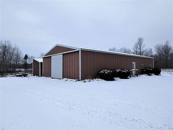 Here is the spot to enjoy country living and a place for the horses too!! This updated country home offers main floor living room, family room with gas field-stone FP, formal dining room, kitchen, master bedroom and full bath. The upper level provides 2 additional bedrooms. Added features are updated kitchen, bath, flooring and vinyl windows. The property also provides large fenced pastures, a 32x64 pole building currently set up with horse stalls, a 2.5 car garage and a storage shed. On 18.69 partially wooded acres(per assr). Don't let this one pass you by, schedule a showing today!