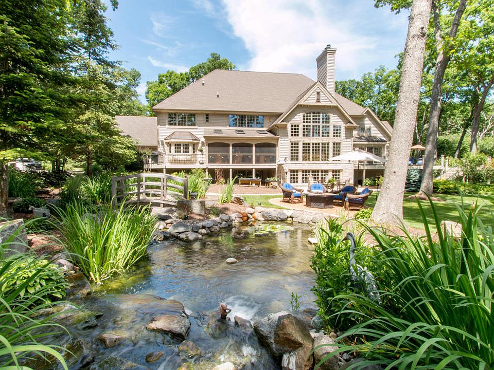 This exceptional stone, brick and wood home is perfect for family, business, entertaining inside and outside. Tranquil ponds, waterfalls, and abundant wildlife. Sound system, 18' cathedral ceiling, wet bar, dining room with butler pantry, screened porch, you will love it!
