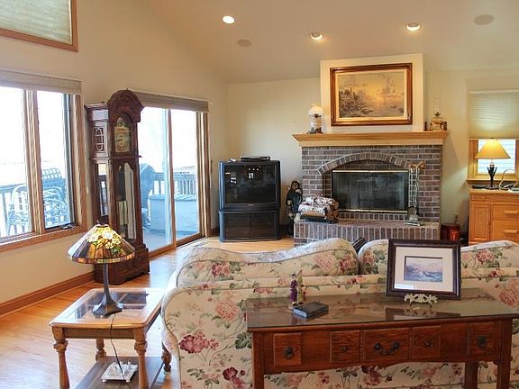 51' of level swim frontage and long lake views awaits the buyer looking for a quality, custom built lake home with low maintenance. Modern 3BD 2 BA 2 car heated garage, 2 kitchens allows space for family and friends to gather. High end finishes, granite, hardwood, cathedral ceilings, FTC FP and expandable LL with heated floors. Large deck overlooks perennial gardens and lakefront. 2 piers w/plenty of space for lake toys and guests