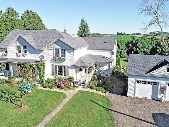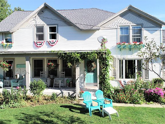 Truly stunning 4 bed/4 bath home finished to an exceptional standard w/ breathtaking views, set on nearly 2 tree-lined acres! Fully restored w/ high end finishes & immense character & charm. Quartz island, striking tin ceiling, newer appliances, dine-in kitchen, formal dining w/ original hardwood, spacious living room, & den. Convenient main level bedroom, full bath & laundry. UPSTAIRS: 3 bedrooms each w/ own full bath, loft, exquisite master suite w/ sitting area, shower for two & whirlpool tub. Unique bar/rec room. Ideal for multi-generational living or a B&B! Two covered porches, back patio, secluded firepit area, many fruit/pine trees. 12x12,12x19 & NEW 24X28 garage. Only a relocation allows this opportunity to acquire one of the finest country homes! Must see!