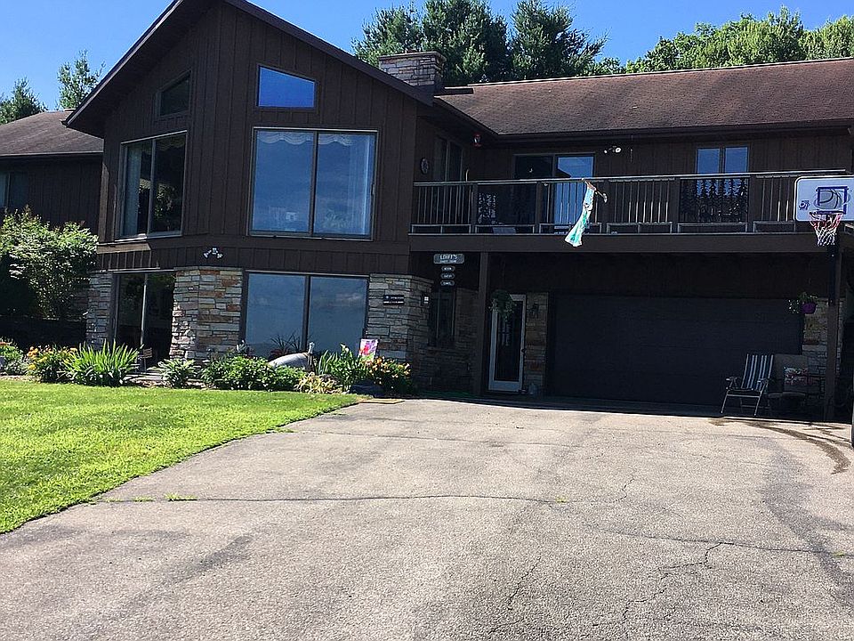 Million dollar view of Shawano Lake! Located 2 miles East of Shawano. This secluded, open-concept home boasts custom oak cabinetry, vaulted great room, three bathrooms, two large wood burning fire places, and beautiful central staircase . There is a large 36'x76' heated workshop (2900 SF overall) with attached 28x36 garage, bonus storage and 10x20 heated office. Wonderful outdoor opportunities await with Mountain Bay Trail nearby, ATV/UTV open County road, and snowmobile trails nearby. Additional home highlights - Main floor laundry, Central Air, both Wood and Gas Furnace, large basement storage room, many landscaped flowerbeds, waterfall, hot tub and outdoor firepit.