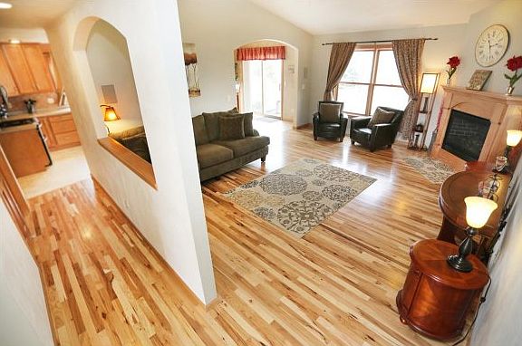 Exceptionally maintained Darboy ranch with terrific professionally finished lower level! Cathedral ceiling and beautiful hickory flooring in the living room in addition to a gas fireplace. The kitchen has an abundance of maple cabinetry, custom Italian tile plaster backsplash. Features include archways, 6-panel doors, and a whole-house air exchanger. Brick patio, mature landscaping. Appliances included!