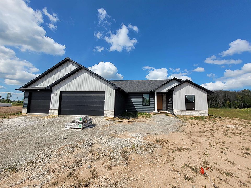 Don't want to be looking into your backyard neighbor's windows, then this is the home for you. This lot has green space with a pond in the backyard. Come see the difference in this custom home for sale by Virtue Homes. This homes estimated completion date is 10/8/2024 and finishing will progress daily. Photos will be updated when more complete. This is the popular split bedroom ranch "Mimosa" plan featuring 3 bedrooms, 2 baths with open concept living, dinning and kitchen with walk-in pantry. Primary bedroom has ensuite bath and walk-in closet. Lower level is unfinished but has an egress window and stubbed plumbing for a full bath and even a wet bar. This home also has garage to basement stairs and if you have had them in the past, you will understand why there is no going back.
