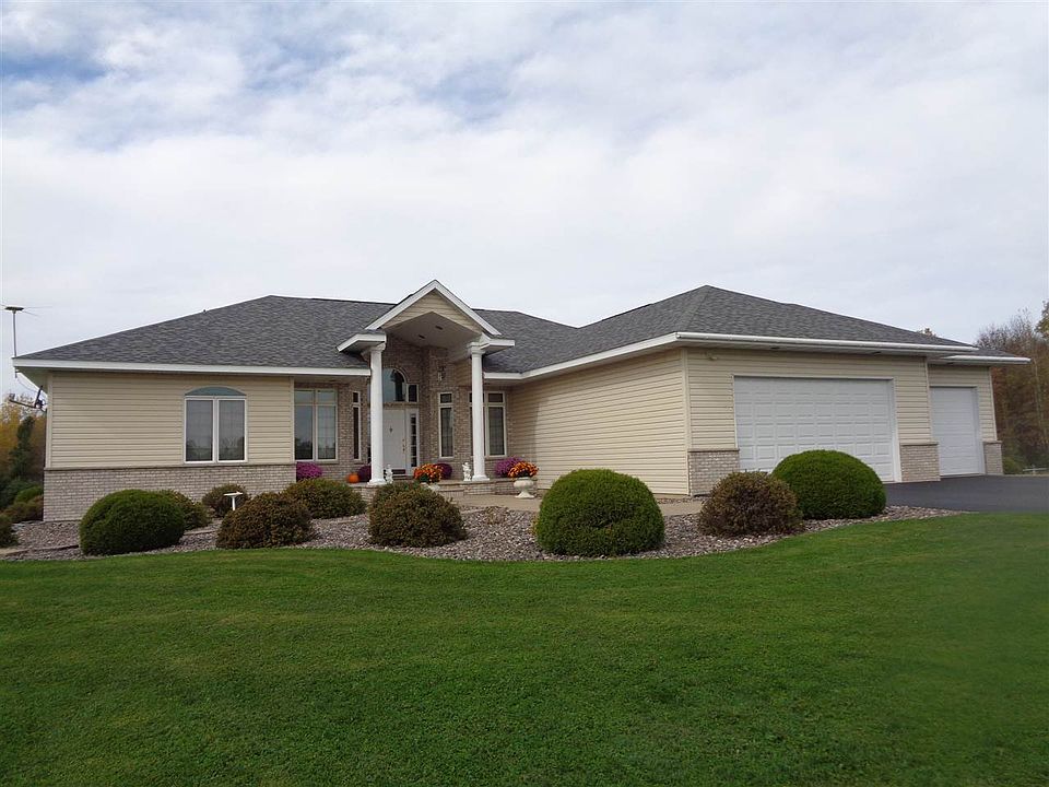 Executive 4 bedroom, 3.5 bath contemporary style home located one mile north of Medford at the end of a blacktop cul-de-sac. Open concept design with cathedral ceilings and recessed lighting. Large oak kitchen with island and breakfast bar. Formal dining room. Large living room with gas fireplace. Master suite with walk-in closet and master bath with double sinks, whirlpool tub and shower. Second master suite with walk-in closet and full bath. Finished walk-out basement featuring a family room with pellet stove, 2 bedrooms and a 3/4 bathroom. Attached 3 car garage. +/-4.4 acre lot with professional landscaping, blacktop driveway and vegetable garden. Drilled well and mound septic system. The refrigerator, oven, dishwasher, microwave, washer, dryer, window coverings, large freezer in basement, water softener and pellet stove are included in the sale price.