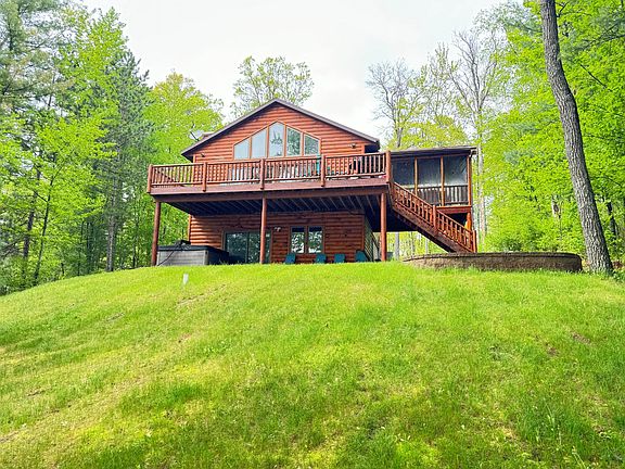 Furniture Included. Cabin on Clear Lake private lake. Very bright / white pine. 4Bd 3Ba open concept kitchen and living room. 3 season room oversized balcony and patio w/ Hot Tub. Walk out finished basement. Family Room w/ pool table, air hockey, dart machine Included. Drive Thru Pole Barn. Located on spring fed lake crystal clear perfect for swimming, paddle boarding, and kayaking. Very close to Hiking, Snowmobile, Atv trails and golf course. Very Successful Vacation Rental. Owner licensed Real. Estate Broker in the state of Wi. Fishing large mouth bass, northern pike, panfish , Walleye, according to DNR. Pontoon fishing boat Viaggio 20 ft. Negotiable