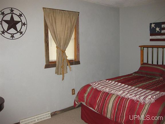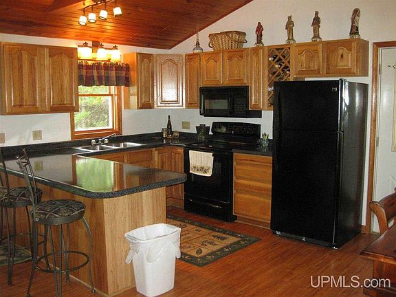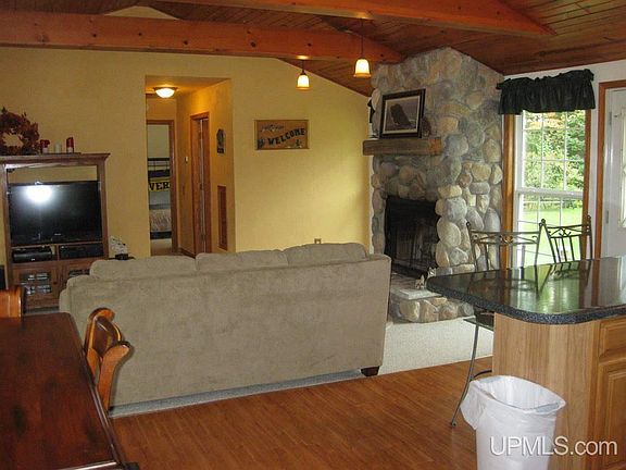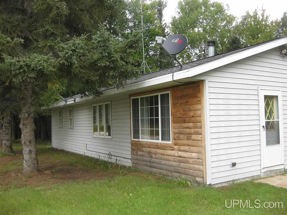 Quality-built 2BR, 1BA home on 1 wooded ac features open concept LR/KT/dining area; wood-burning fireplace; T&G cathedral ceiling; top-quality laminate flooring; newer light fixtures, furnace, & appliances; and central air. Larger bedroom has a large walk-in closet with beautiful barnwood doors. Additional amenities include a drilled well, newer mound septic system, nicely landscaped back yard, & 2 sheds for all the toys! Partial bsmt provides additional storage. Located in a prime recreational area near 1000's of acres of public land, rivers, and snowmobile/ATV trails. This is a must see for either a vacation get-away or a full-time home.