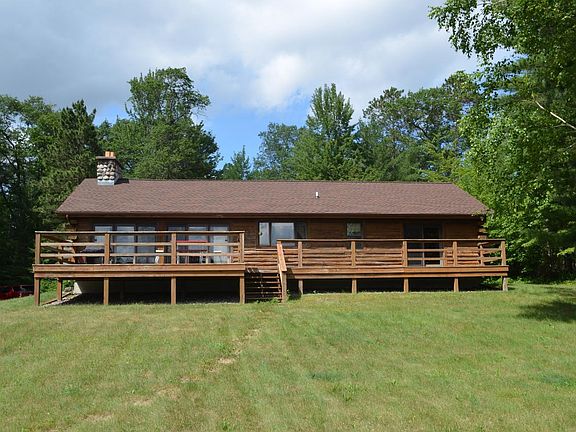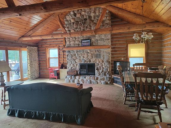 COZY PRIVATE CLEAR LAKE LOG-SIDED HOME! This property consists of 2 tax ID numbers with 200 ft of sandy southern facing shoreline. It is a very gentle taper from the home to the waterfront. A sectional dock and boat rail system are included. The expansive water views are panoramic and secluded. There are mature woodlands to offer a great privacy buffer from the road. This home is NOT visible from the road. The log-sided home has an attached 2+car garage. The entryway takes you to the main living area. The great room has a cathedral ceiling and a fieldstone fireplace as a centerpiece to the living area. There are patio doors to the lakeside, elevated deck. The kitchen has a vintage-looking modern electric stove and wood floors. The 3/4 bathroom has been planned for a washer/dryer space. The owner's bedroom has access to the main bathroom and a patio door to the lakeside deck. The basement is insulated and unfinished. There is a flue for an FP and it is stubbed for a 3rd bath.