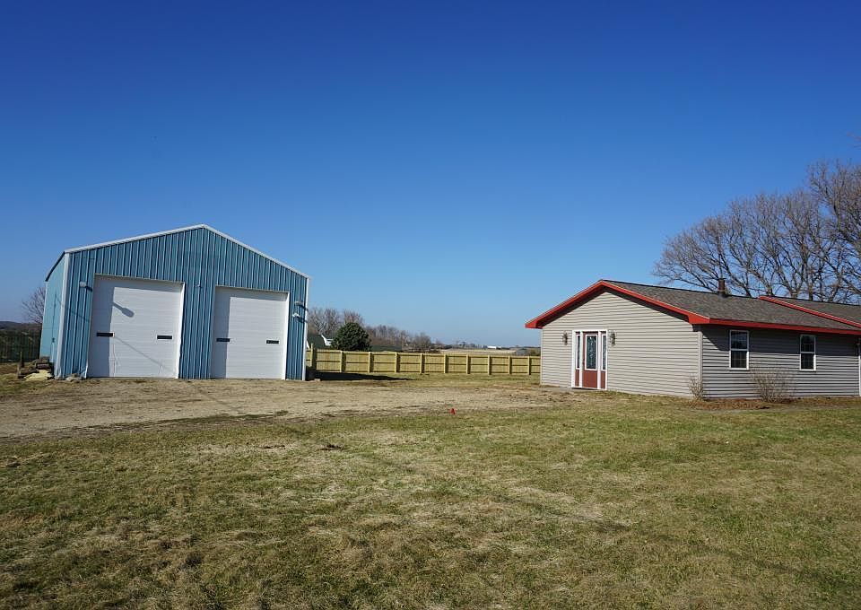 Move right into this spacious one level home on 1.62 surveyed acres close to town! Open floor plan offers good natural light and no steps! Large kitchen provides ample cabinetry, lots of counter top space and includes the stainless steel appliances! Stylish laminate flooring flows from here thru the dining. Adjoining living room features neutral carpet, recessed lighting and big picture window. Master boasts an attached 3/4 bath with tiled floor and tiled walk-in shower! 4th non-conforming bedroom (no closet) with laminate wood floors is currently used as a closet. Big family room has neutral carpet, lighted ceiling fan and recessed lights. 30x48 pole shed has concrete floors, loft and 12ft overhead doors! Home also has a new well pump and pressure tank; brand new privacy fence; nice solid panel doors and trim; furnace with humidifier; high speed internet available. Check out this great main floor living home today!