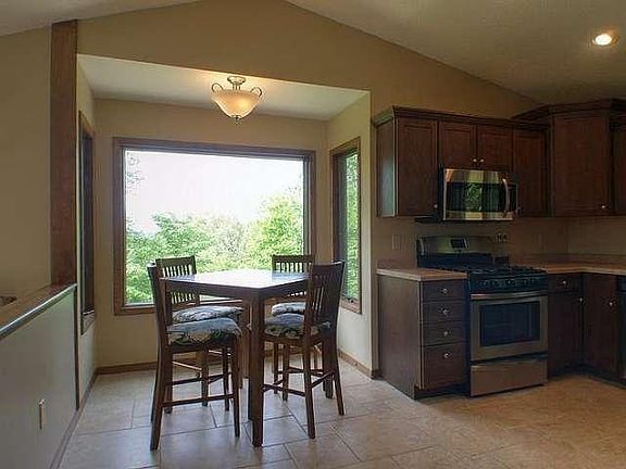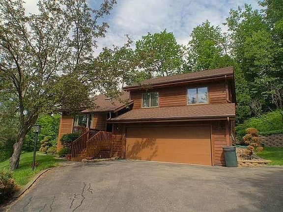 Desired Apple Valley Home. This Multi-level home with high vaulted ceilings is nestled among mature trees on a secluded 1.58 acre lot and only minutes from bustling Holmen. Great views of the MN bluffs and the surrounding landscape. Large outdoor patio and deck to enjoy the birds and deer in the yard. Home is inviting with lots of light from windows and skylights. Fabulous living room with natural fireplace. Eat-in kitchen updated in 2013 and includes appliances. Formal dining area. Large family room going out to patio. Master suite with entry to upper deck. 3 bedrooms on upper main level and 1 bedroom/office on family room level. Lower level basement for your storage needs.