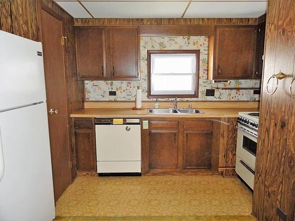 BIRCH AVENUE SOLITUDE. End of the road privacy provides country quiet however offers city convenience as it's just outside the city limits. 1979 mobile home (14x62) offers 3BR-2BA combined with a 22x24 family room addition with block foundation, vaulted ceiling, abundant windows for natural light, large gas log corner fireplace with washer river stone above mantel, vinyl siding, insulated windows, 12 yr old steel roof, central air, appliances included (new fridge), detached garage, 8" drilled well, double holding tank installed 2002 as system of choice (neighboring parcel perc for mound). Affordable either as recreational HQ or year-round residence!