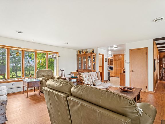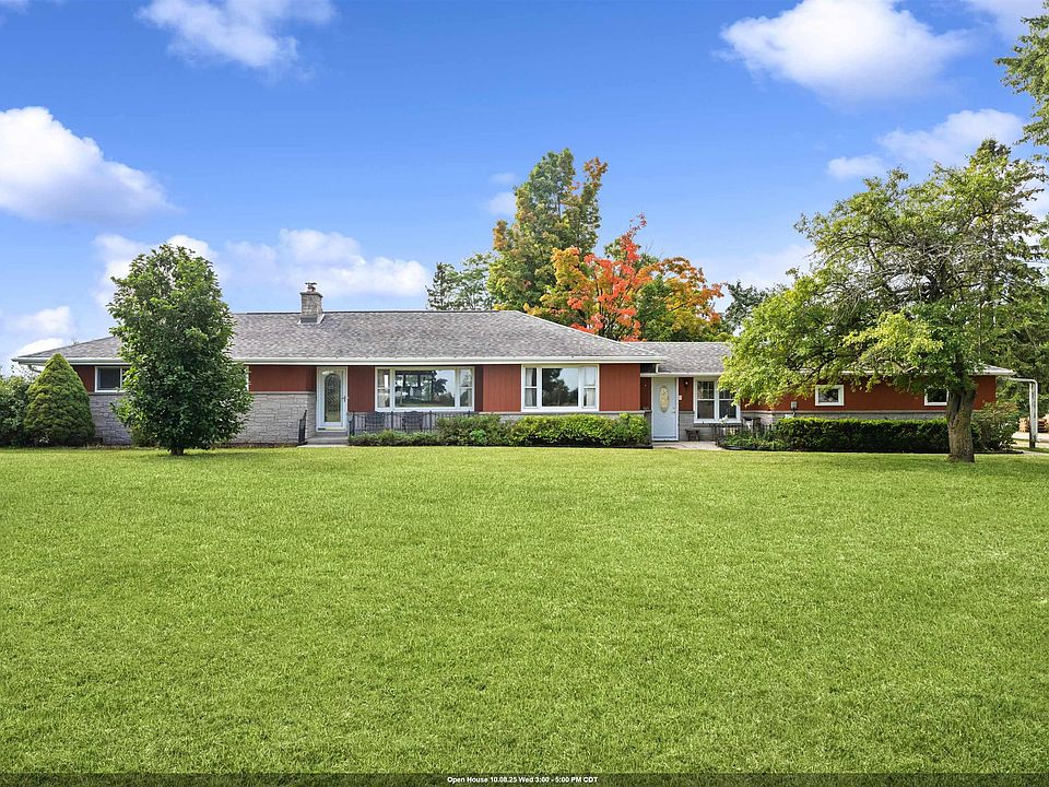Open House 10/8 from 3-5 pm. 1.87 acre property. Ranch home with living room, formal dining, kitchen with island, main floor laundry, mud room, 2.5 baths and 4 bedrooms. Partial finished lower level complete with family room, workshop and walk-out. Wood burning fireplace. Attached garage and heated, detached garage. 27x14 Composite Deck. Pear tree. Leaf Guards. Appliances included. One Owner Home! 48 hour binding acceptance and no binding acceptance on weekends.
