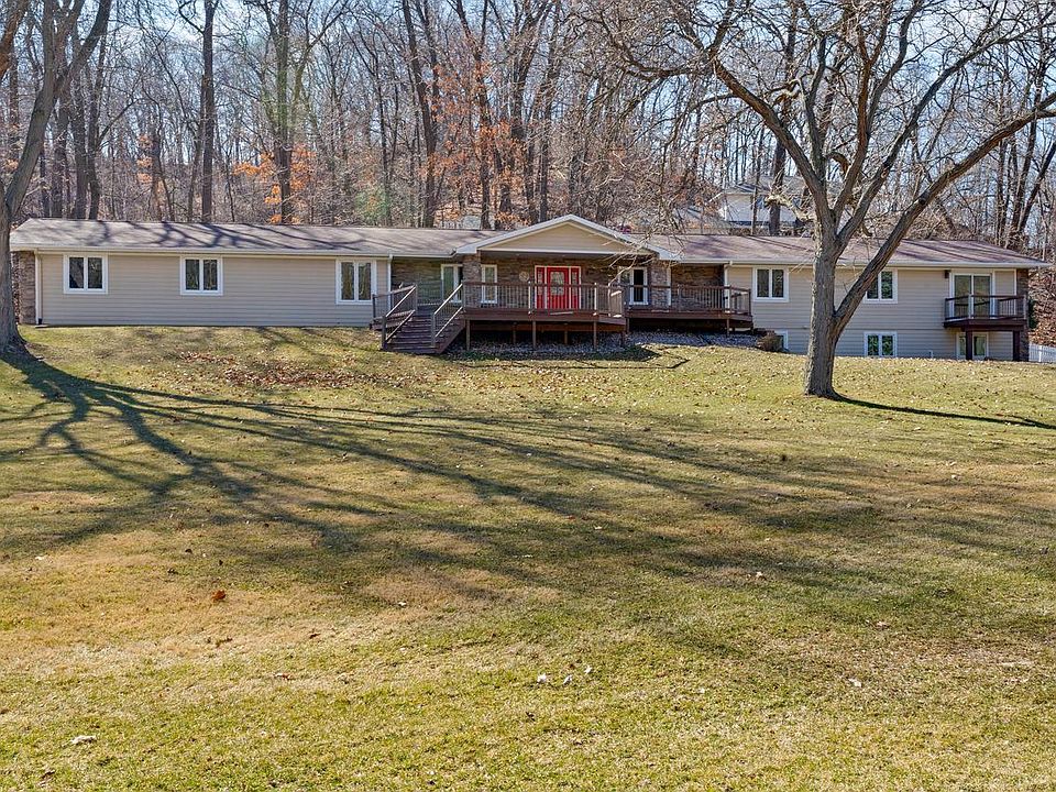 Peace & tranquility await you in Hidden Valley! Featuring a nicely updated executive 5bed/4ba/4-car garage/Fenced yard on 1.5 acres of pure bliss and amazing views! The expansive open concept living room/kitchen includes cherry hardwood floors, vaulted ceilings, skylights, and gas fireplace! Kitchen features double ovens, large island with breakfast bar, and wet bar! First level also has 3-season room, main-floor laundry, office, bedroom, huge primary bedroom w/ 2 WIC, wonderful en-suite bath w/ jetted tub/walk-in shower, and private deck. LL features 2 bedrooms, garage access, massive family room, wet bar, gas fireplace, full bath, and 2nd primary suite w/ living area, WIC, and en-suite bath! LL has new LVP flooring and waterproofing system. $17,500 in escrow for 3-season room renovation