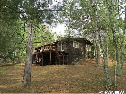 Beautiful private setting on one of the area's top lakes! Huge wooded waterfront parcel with excellent frontage, great views, and nice boathouse at the shore. This 4 season home/cabin features 3 bedrooms, 2 baths, and a walkout basement. Large sundeck, 2 detached garages, and an open vaulted living/dining/kitchen. A wonderful mix of trees surround this cabin which make this setting a truly rare find!