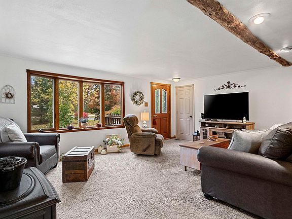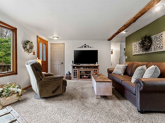 Tucked away in the woods just north of town, this 3-bedroom, 2-bath home offers the perfect blend of privacy and convenience. The updated kitchen and flooring (2022) create a fresh, modern feel, perfect for cooking and entertaining. A separate office offers flexible space that could be converted into a 4th bedroom. Relax in the 3-season room or step out onto the back deck from the primary bedroom to enjoy the peaceful sights and sounds of nature. Additional features include a newer metal roof, newer well pump, 2x4 walls, furnace and a/c (~2020), and an detached 2-stall garage with a 14x8 lean-to for extra storage. Sitting on 1.6 serene acres, this property is a peaceful escape just minutes from town and Shawano Lake!
