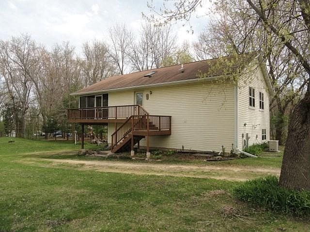 Water frontage on Lake Puckaway. Well built newer 3 bedroom, 2 bath lake home sits on 1 point 7 acres. Over 1,600 square feet. Large wrap around deck and very nice screened in porch. Open concept with vaulted ceiling in the kitchen, dining area and living room with fireplace, all appliances included. Nice sized bedrooms. Full walkout basement with family room, bedroom and bath. 1 car attached garage. Central air, central vac. Enjoy lakefront living or your getaway lake home.