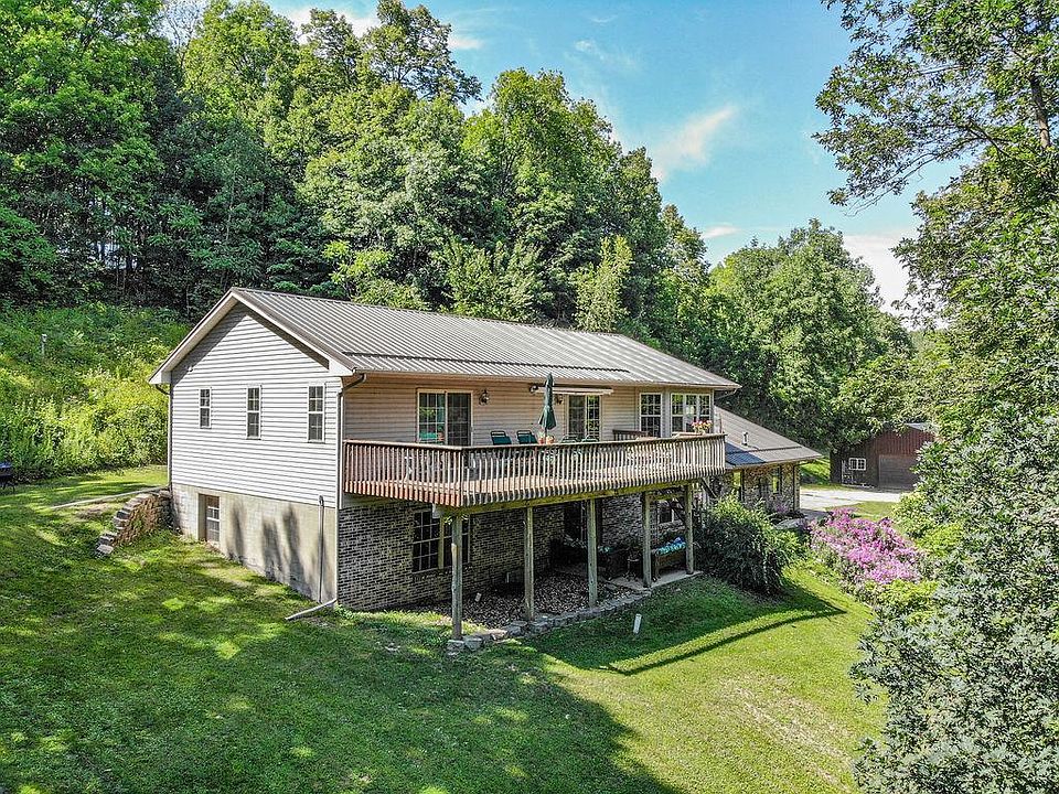 Peaceful 44 Acre mix of Woods and Tillable Land, great hunting & Hobby Farm potential!! Well maintained 4BR/3BA Home w/open floor plan. Welcoming Center-Island Kitchen w/SS appliances & large Pantry. Generous Primary Suite w/Private Bath on Main Level; as well as 3 large Lower Level Bedrooms. Beautiful updated Flooring throughout the Home! Plenty of Outdoor seating areas!! Living Room leads out to large front Deck for enjoying the peaceful outdoors; Kitchen leads out to covered back Deck & Lower Family Room leads to outdoor covered Patio for those warm sunny days! Attached heated/insulated 2-Car Garage along with 60x30 Pole Shed w/concrete floor for all your storage needs! New Fiber Optic Internet installed. Check out this extremely Private Setting, just 1 mile from Town!!!