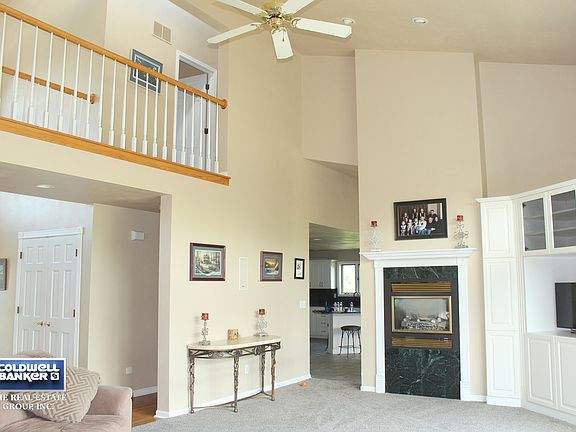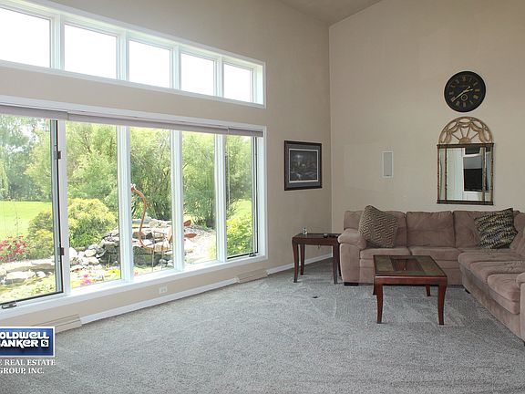 Welcome to this lovely 1 1/2 story, 3 bedroom, 3 ½ bathroom home located on over 2 acres. Updated granite kitchen countertops w/modern backsplash, pantry plus eat at snack counter. The kitchen opens to your dining area with double-sided fireplace. On the other side of this fireplace you'll find soaring ceilings in the sun drenched great room with awe-inspiring picture windows overlooking coy fish pond with waterfall feature and lush green huge yard. Comfy, sun-kissed 4 seasons room with wood stove and patio doors leading to the decorative concrete patio. Newer carpet and paint throughout most of this exceptional home. Office, laundry room with sink, huge walk in closet and vaulted ceiling master bedroom, walk-in closet with master bathroom with updated fixtures are all on the first floor! Balcony connecting the two upstairs bedroom wings overlooks the great room and provides a stunning view of the yard. Rustic finished lower level family room complete with wet bar, gas fireplace, tile flooring, lounging and entertainment area. The shop area provides access to the garage from lower level. All with a 2 ½ car attached garage plus a detached garage for all the extras. Deer, fox, turkeys and wild life abounds! Large apple tree. Enjoy roasting marshmallows in the fire pit while looking at all the stars. HMS 1 year Home Warranty included as well as the appliances! This truly wonderful home is waiting for you! See today!