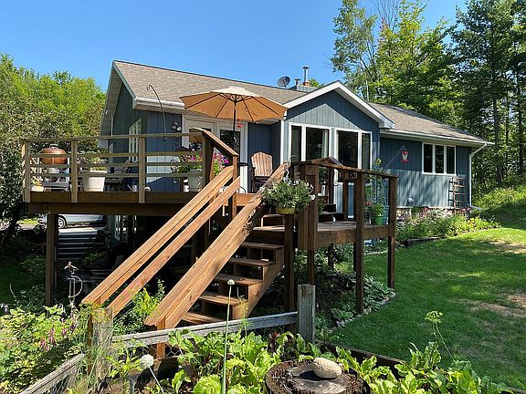 Peaceful, private, perfect! This 1700 sq ft home sits on 6.8 acres of gently sloping southern exposure on Sailor Creek Flowage. 3 bedroom, 1 3/4 bath. 2 car attached garage with 240 sq ft overhang on the backside to store your boat, toys, firewood, etc! Garden shed for even more storage. Kitchen has granite countertops and stainless appliances. Generac backup generator. All paved roads lead to crushed black granite driveway with large cement and decorative pavers lined garage approach. Wildlife abounds year round with miles of cross country ski trails, snowmobile and ATV trails. National and County forests nearby. For an aerial view of property visit YouTube and search for "A Flight in Northern WI" $575,000