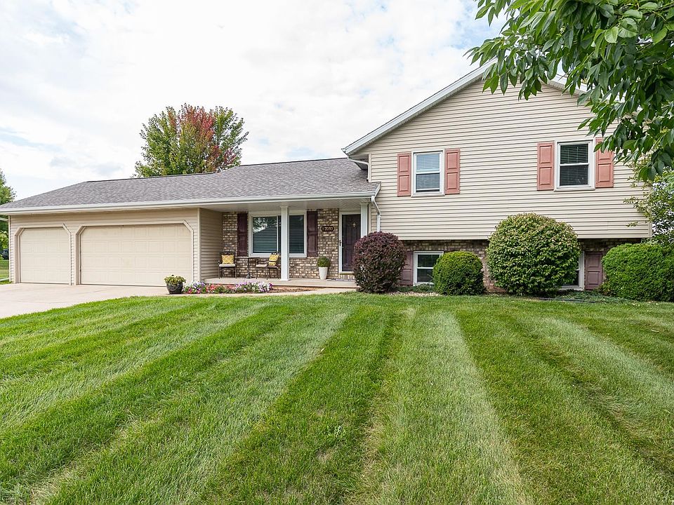 Fantastic quad level with 4 bedrooms, 3 full baths and 3 car garage. Main level has living room and kitchen which was recently remodeled with custom-built cupboards, countertops, appliances and backsplash. Kitchen features pantry, island, large dining area and gas stove. Hardwood floors throughout main level and LL family room. Upstairs has 3 bedrooms-spacious primary bedroom w/walk-in closet and double sinks in bathroom and walk-in closet. Lower level with family room, 4th bedroom, bathroom with laundry and the basement with bonus room. Spacious house on great lot w/fruit trees. Roof & water heater were replaced in 2022 and windows in 2019. Great property!