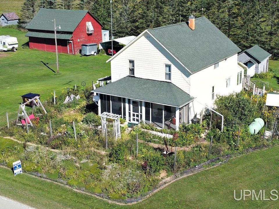 Classic 2 story farmhouse on 40 acres. Hardwood flooring throughout the main level with 2 beds and a full bath. The upper level has 2 bedrooms and a huge family room with an included pool table. In front of the house is a 26 x 7 covered screen porch which connects to the perennial garden that surrounds the home. There are several outbuildings. A 35 x 26 barn with loft that was once used for horses. In back of the barn is an 8 x 28 storage trailer that could utilized as a workshop. There is an additional well in an old pump house that the seller used to irrigate a fenced in garden that was previously used to raise pigs. Farther back is an elevated play house/deer blind that overlooks the back fields and seasonal pond. An old smoke house and wood shed round out the property. The west 20 acres was once pasture, the NW 10 acres is mostly wooded and the SE 10 acres is where the house and outbuildings are located.