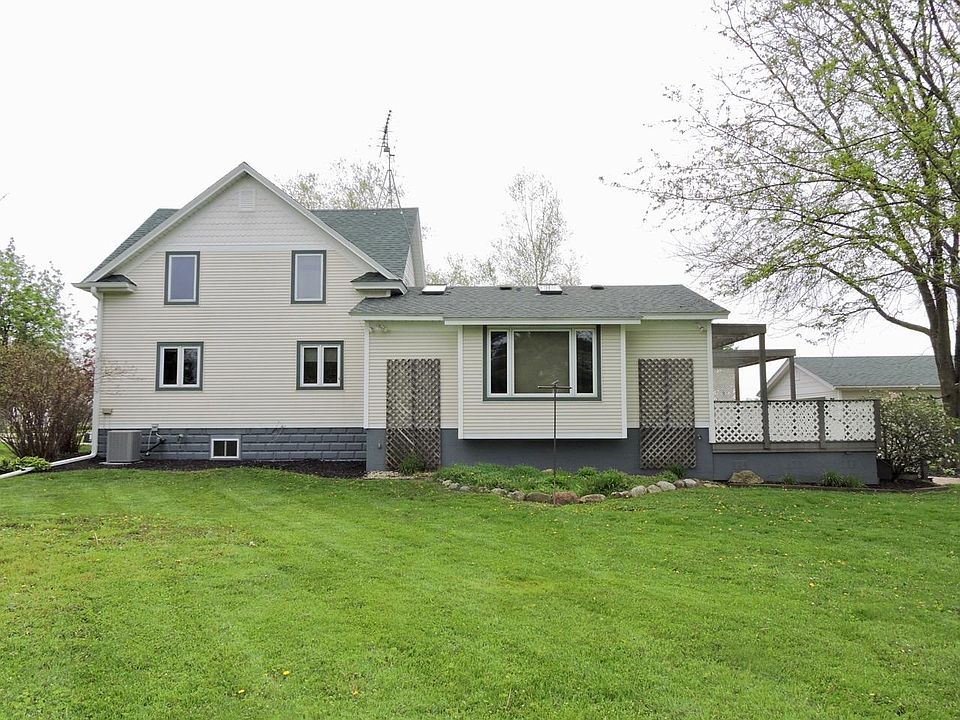 Charming Country Setting on one acre features well maintained two story home, complete with 4 bedrooms and 3 baths - Kitchen with newer stainless steel appliances, great room features skylights and built in hutch plus ingrain wooden floor - laundry room on main floor - three bedrooms and one full bath on second level - heat source is from rented propane gas tank - Four car heated garage - Chicken coop off back of garage - raised garden beds in back yard - lovely trees with plenty of space for outdoor fun - Lovely wrap around deck on east and south side of home - property has been meticulously maintained - must see inside to appreciate all the completed work!!