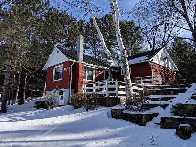 Location...Location! This 3 Bed 2 bath cottage is on 175' of sandy Water frontage and is situated on a large lot overlooking the Beautiful Phillips Chain of Lakes. The cottage is nicely landscaped and has a patio area overlooking the lake. On the property there are multiple garages sizes: 28x24, 28x20 and 30x12 and a Gazebo down by the waters edge. This property and location is hard to find Schedule a showing TODAY!