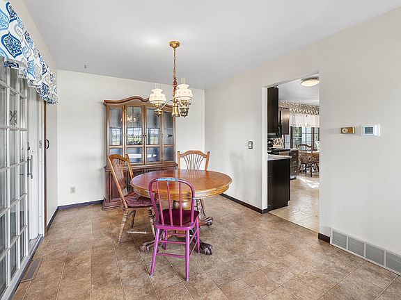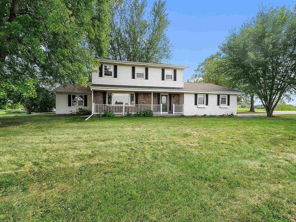 Classic colonial 4bed/1.5 bath home owned by original family who built in 1974. Large FR with a gas fp and patio doors out to a concrete patio, spacious kitchen with newer appliances, laundry room with newer washer and dryer, DR, LR and a bonus 4 season sunroom has a counter and sink and mini fridge and an ext entrance to a fenced in patio area great for pets! Upstairs are 4 bedrooms and a full bath. LL has a part fin rec room with a bar for entertaining. Unfinished area has a dog bath and 2 year old furnace. New roof in 2020 and brand new septic system aug '25. Along with the 2 car att garage is another garage with heat and electric and stalls for small animals - with a new roof and garage door. All this with a peaceful 3.7 acre lot including a pond for fishing.