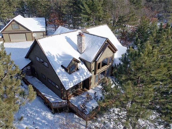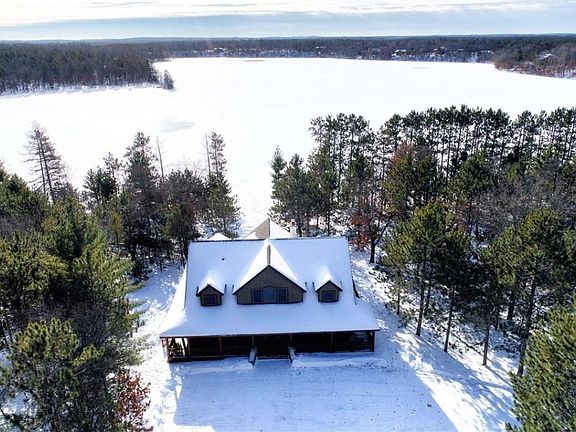 Stunning, like new, meticulously cared for home located on pristine Horseshoe Lake; nestled perfectly on 3 level acres with a sandy beach and warm southern facing views! Loaded with high-end finishes, this 5 bedroom 4 bathroom home has the up north charm you have been seeking. Majestic fieldstone fireplaces, marble kitchen countertops and sink, Australian Cypress flooring, soaring vaulted ceilings, amazing master suite, cozy loft, custom log railings and cabinetry, lower level infloor heat and heated tile floors...the list goes on. Relax and enjoy the outdoors on a 162' wraparound deck with large screen porch. Oversized 3 car garage with heated/AC living quarters is ideal for guests. Black Bear Golf Course is only a few hundred yards down the road. Adjacent 3 acre lake lot is also available MLS #1538629. Great recreational area!