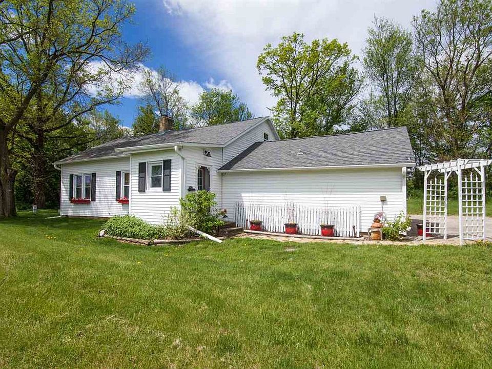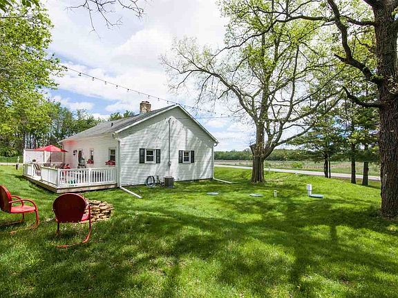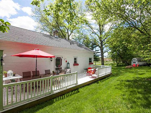 Charming renovated home on a quiet, safe country road! This low maintenance home has welcoming foyer, beautiful wood burning stone fireplace in the living room, bright & airy kitchen w/white cabinetry, stainless appliances & dining space, sliding barn doors, 2 BRs & full bath on the main & a huge upstairs bdrm. Off the kitchen is a deck w/hot tub large enough for entertaining family & friends. Window boxes lend extra charm! .5 acre lot provides plenty of room for gardens. Storage space in the full basement. 2 car attached garage. Updated septic, roof, siding, windows & A/C. Great location for commuters & Lake Mills school bus stops nearby!