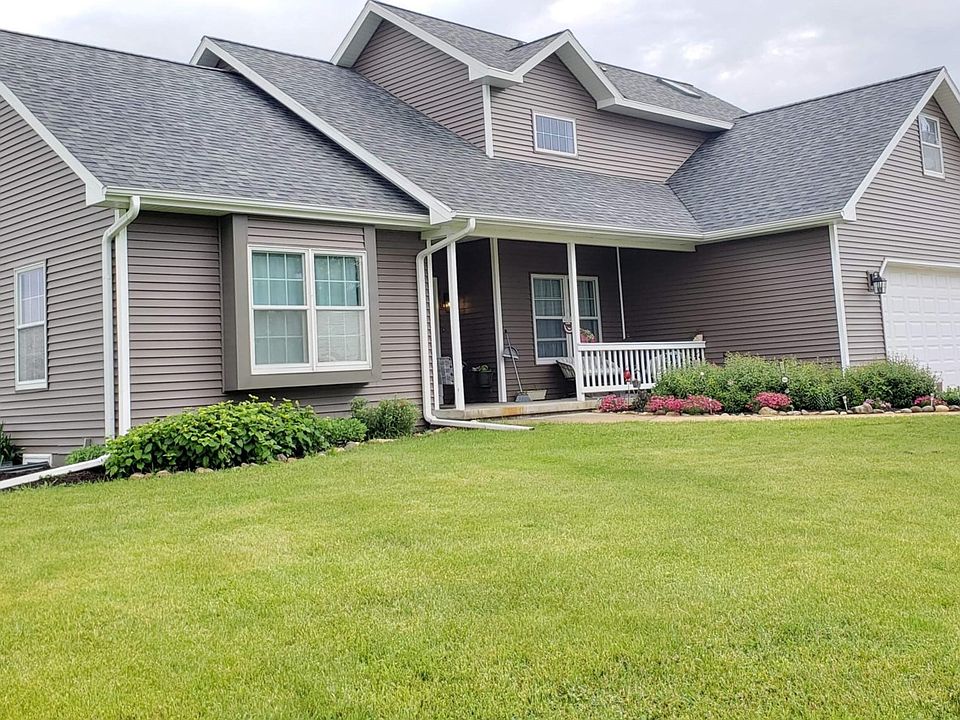 Country living on 37 acres, with the option to be a fully running farm with 33.6 acres of tillable land for crops . Enjoy the sunrises and sunsets from your front porch. Home built with an open floor plan with a split bedroom set up, skylights, fireplace. Full basement with plumbed for a bath and a separate entry to the garage. 50 X 70 pole barn set up for animals. Additional Small Buildings one with Electric, water and heat. Many options . Additional 40 acres for sale corner of Stateline & Cty K. MLS # 1796340. Newer roof, siding & furnace.