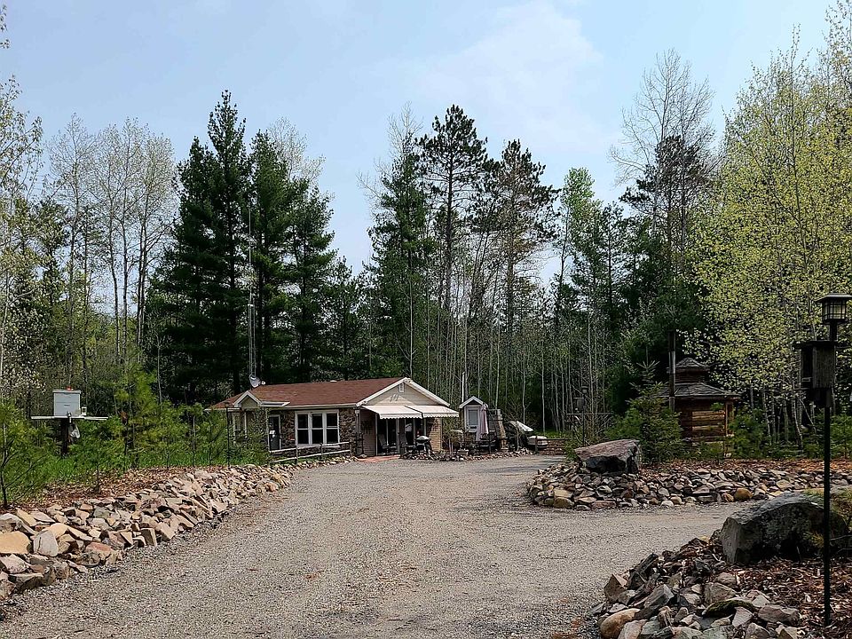 This cute cottage/home is situated on over 4 acres of peaceful seclusion. With single-level living and an amazing attention to detail both inside and out, make this is a must see! The open concept is very welcoming and the custom trim and wood accents throughout bring the Northwoods charm you've been searching for. The outdoor patio with built in fireplace/wood grill give you an amazing outdoor living space to enjoy. With a 16X24 detached, heated garage there is plenty of storage for all your toys. Properties like this don't come up often, call now to take a look!