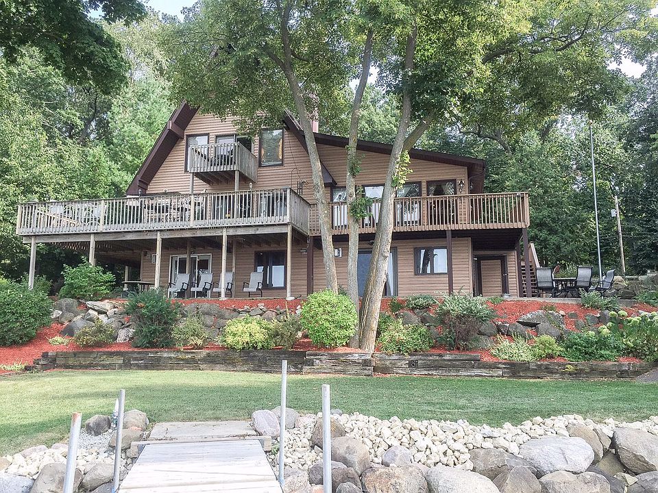 PRICE REDUCED $50,000! GORGEOUS YEARAROUND LAKEFRONT RETREAT. 128FT OF BREATHTAKING LAKE KOSHKONONG FRONTAGE. 4500+SF, 6BR, 4+BA waterfront beauty currently used as a B&B. LR w/wall of wndws to view lake. 2sty DR+hearth rm w/fp. Fully appointed KIT w/ss appls incl 2dbl ovens, 2dshwshrs, 5brnr cktp. MBR suite w/full BA, his/hers clst, priv patio. To-die-for LL w/2 suites, both w/full BAs, ovrsz jac tub, fp, full w-out to pat. 2Lndry areas. Multi-tier dck. 3C gar+add'l 6C prk. Pier incld.