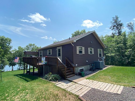 A very private waterfront home on clean and clear Sleepy Eye Lake. This newer quality built home has a nice open floor plan facing the lake and large wrap around deck. Walkout from the lower level with minimal elevation to the sandy beach. The home has three spacious bedrooms and two garages one with attached heated workshop. Its been nicely maintained and that is evident everywhere you look. A very wooded setting near the end of this dead end road. It sits on 2.83 acres and 149’ of frontage. Enjoy the fishing, recreation and fun that Minong has to offer.