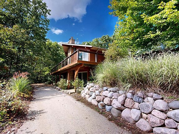 Rare opportunity to own this secluded home in the heart of the Kettle Moraine. Privacy surrounds you and you can see for miles from this hilltop retreat. Rustic home with cathedral ceiling, woodburning fireplace, some hardwood floors and walls of windows to view nature from. A huge deck is perfect for relaxing or entertaining. It's rare to visit this property and not see deer and other wildlife. This home is part of the Scattered Oaks HOA which includes a private beach for your use and boat slips as available. Check this one out!