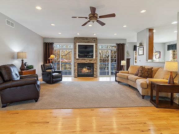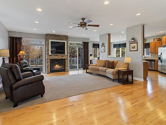 Impressive and in a class of itself. This custom home is a winning combination of beauty, warmth and value. Life is better at the lake and you will enjoy both with lake rights to Whitewater Lake just steps away. With striking hickory floors, maple cabinetry and corian countertops this home lives up to and surpasses your expectations. Situated on just under an acre, this 4 bedroom 3.5 bath home with its open concept is perfect for entertaining. Here's a recipe for success: efficient style plus inviting warmth in this large kitchen with Jenn Air gas stove. The large great room with gas fireplace flanked by glass doors brings in the beauty of the outside. Master suite with tub and walk in shower. Walk out lower level beautifully finished rec room is the ideal gathering place for entertaining.