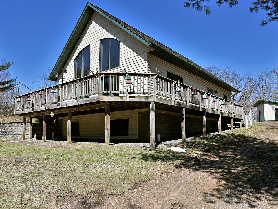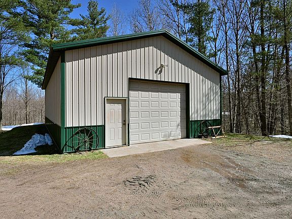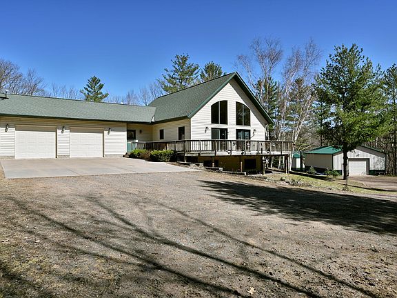 Chalet style home with 3 separate, newer storage sheds nestled in a beautiful private country setting! This clean, 2 bed / 3 bath home is set up perfectly to expand to 4 bedrooms by just finishing 2 already started bedrooms on lower level. Inside offers a free-flowing, open concept with vaulted ceilings, spacious kitchen, large master bedroom with bath, main level laundry and cozy loft area set perfectly to capture warm southern views during the winter. Enjoy your days outside in a picturesque setting on a large, wraparound deck while taking in all of nature’s beauty. Property offers second to none storage….to go along with a heated attached garage there is a 30x48 ft. pole barn , a 38x40 ft. pole barn with concrete floors and a 12x24 ft shed! Located in a great recreational area and only 1.5 miles from the pristine Shell Lake beach and ATV and snowmobile trails. This is country living at its finest!