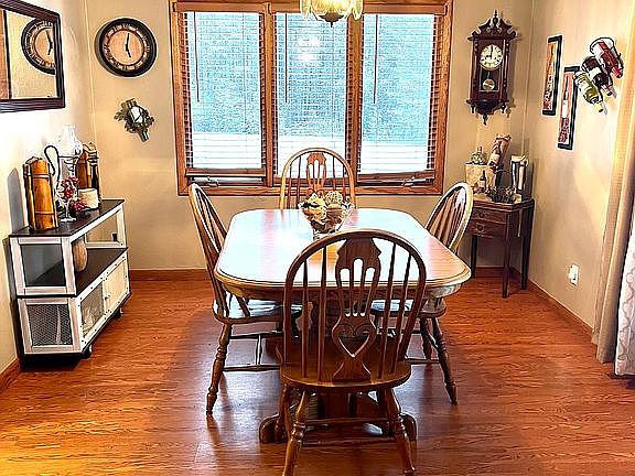 Grand foyer entrance welcomes you to this inviting 3br, 2 bath well constructed home. The updated kitchen with oak cabinets, new countertop and tile backsplash, hardwood floor, includes a breakfast area overlooking the scenic backyard. Separate dining area, spacious living, 2 large bedrooms and an updated bath and laundry complete the main level. An open staircase leads to the lower walkout level with rec room, bedroom, family room with exterior entrance, full bath and storage area with exterior entrance. 2 car attached garage. Direct ATV/Snowmobile trail access to the main highway, yet far enough for privacy. Kitchen appliances included as well as the pool table and TV in rec room. Make an appointment today before this one is gone!
