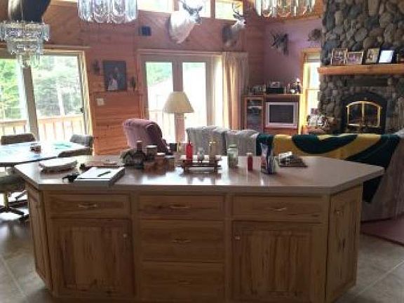 (150)Start making memories in this one-of-a-kind dream home! Built in 2001, this custom 3-bedroom, 3 bath home features an open concept, chalet style main level, with Amish Hickory cabinetry and knotty Pine ceiling and trim work. The living room has a beautiful wood fieldstone fireplace, patio doors leading to the deck on the east side of the home, and entry to a 3-season porch on the north side. Includes a 1st floor laundry, integrated sound system, home security system, and Warm Rain Whirlpool tub. There is a 2-car detached garage w/heated workshop, garden shed, 27'x36' machine shop/shed, and custom built dog kennel. 79 acres (enrolled in MFL to keep taxes low) has excellent hunting, and has produced 14 bucks in the past 16 years according to the current owner. Less than 1/2 miles from the South Fork of the Flambeau River. Located on W. Rock Creek Road south of Fifield. $339,900. (10/15-38-1W)