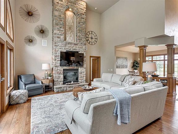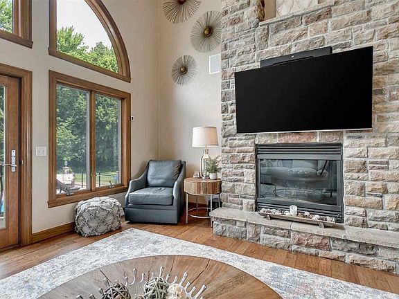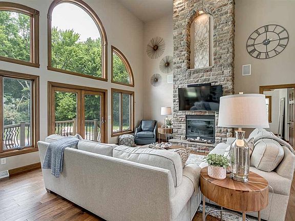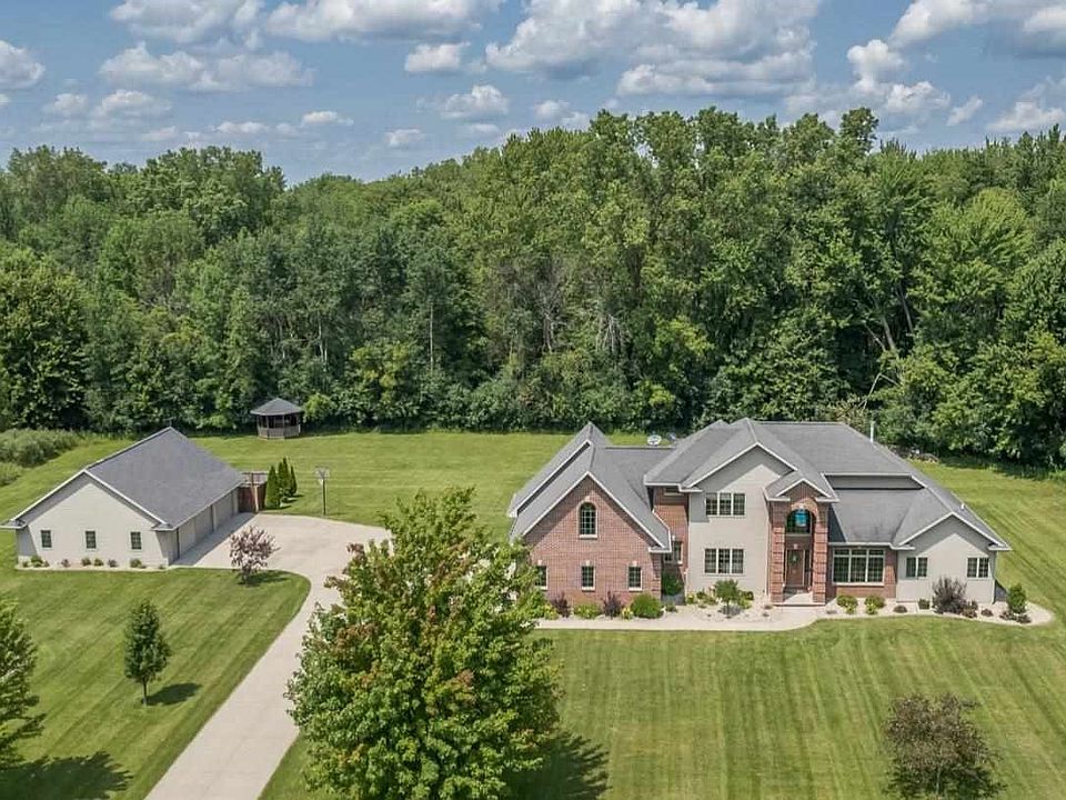 Impressive home setting on 21+/- wooded acres. Beautifully constructed with a generous floor plan. 2 story Foyer, Formal Dining, Great Rm w/volume ceiling & gorgeous FP. Eat in Kitchen w/dual islands. Main floor Master with updated bath. 3 BR's up, includes a Bonus rm. Fantastic walk out LL w/ bar area, Br 5 & custom Theatre Rm with built in popcorn machine! Well landscaped yard with fantastic in ground pool! Attached 3 car garage & detached 3 car garage w/addtl bathroom & bar! 2 parcels included.
