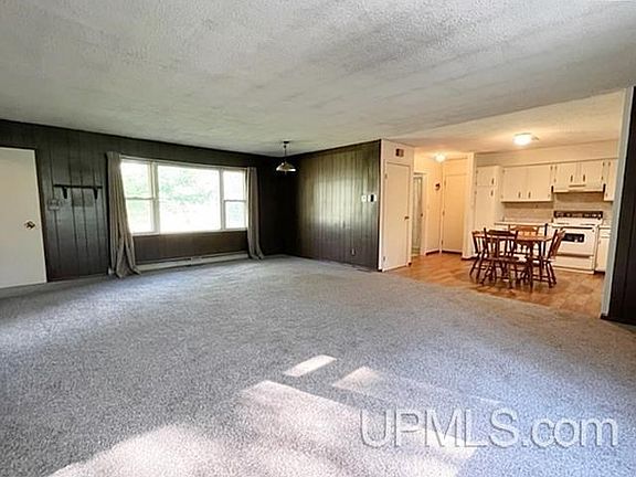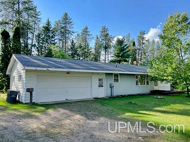 Want to own property in the Northwoods? Here is a country setting for this affordable 2 BR, 1 BA home on 1+ wooded acres for you to enjoy! Features an open concept kitchen/living room area with a spacious layout. Full basement with a walk-out entrance to the att. 2 car garage. GFA furnace in 2015, central air in 2016, and new carpet in 2017. Portable carport for extra storage. Situated on 1.33 acres and located just a short commute to town for amenities. A perfect location too with ATV & snowmobile trail access