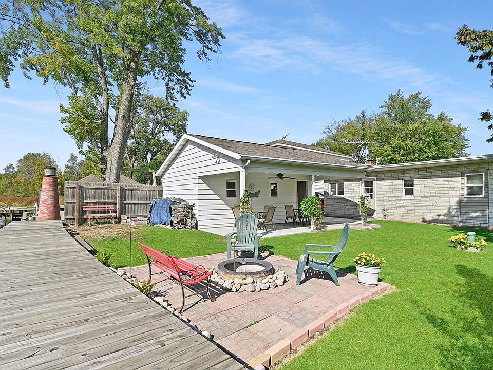 A summer escape, a cozy fall retreat, a winter wonderland. Every season is perfect at this remodeled & fully furnished waterfront cottage! The living area, with its attractive brick fireplace, flows seamlessly into the large kitchen with breakfast bar. Two spacious bedrooms & beautifully updated full bath complete the interior. The outside amenities will make entertaining easy! There's a large furnished patio, smaller firepit patio, boardwalk style deck with pier, and 20' Bennington pontoon boat. The channel frontage leads directly to Rock Lake where you can enjoy swimming, kayaking, fishing & more. Just up the road is easy access to the Glacial Drumlin Trail & picturesque Korth Park. Dining, shopping and community activities await just a short drive away in historic downtown Lake Mills.