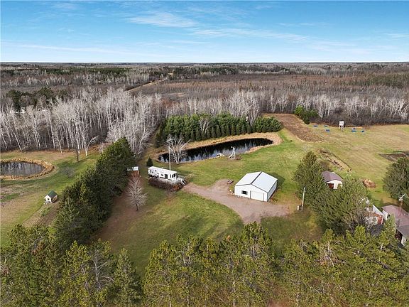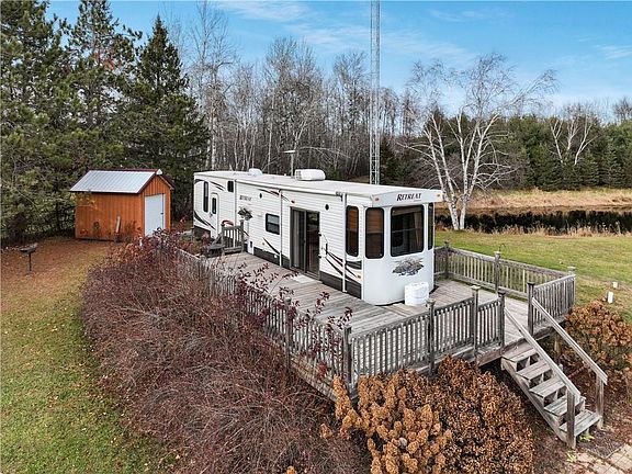 Looking for a hunting retreat, a peaceful spot to getaway or a great lot to build your future home? This just may be the place you're looking for! The property has 9.14 acres and includes a 39-ft Keystone Retreat travel trailer with bump outs in the living room and bedroom, along with a wraparound deck, and a 40 x 40 ft insulated garage that has a bathroom with sink and shower, laundry hookups and plenty of space for storage! If you're a hunter, you'll be impressed by the perfectly groomed trails and 2 deer stands. The pond is about 12 ft deep, which is aerated by the windmill. During the winter months, the middle of the pond stays open, bringing in all kinds of wildlife! Electric on site, conventional septic and a well makes this property ready to go! Close to Dairyland Flowage and the Ladysmith public boat landing.
